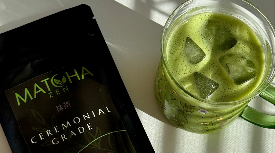 Na rozdíl od kávy, ceremoniální matcha obsahuje kofein a L-theanin, které dodávají